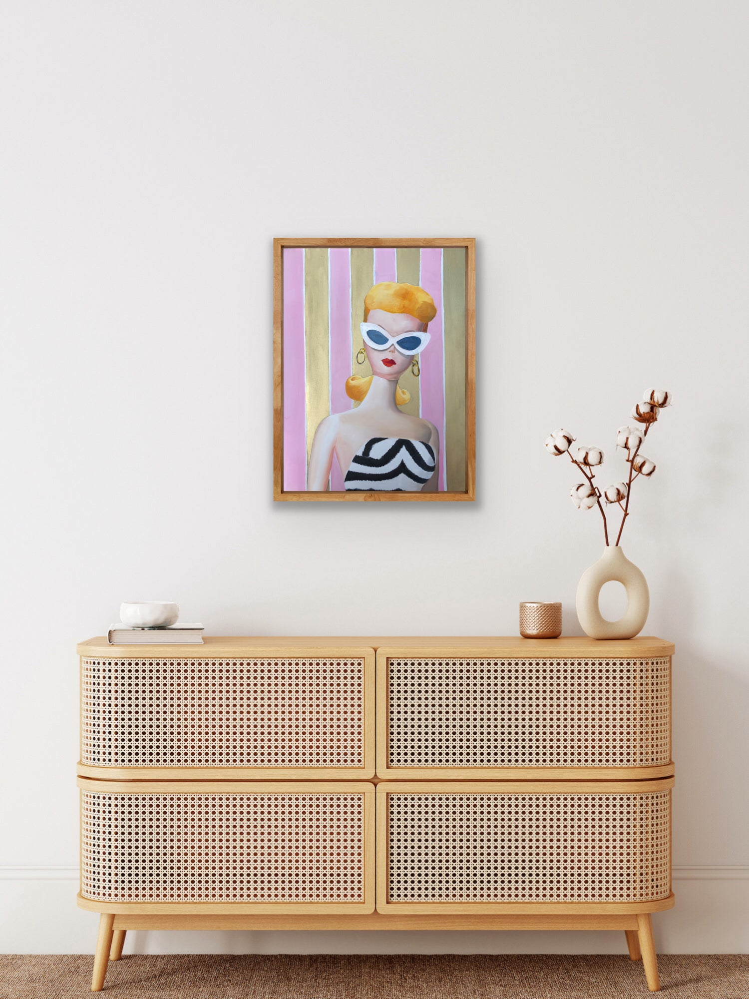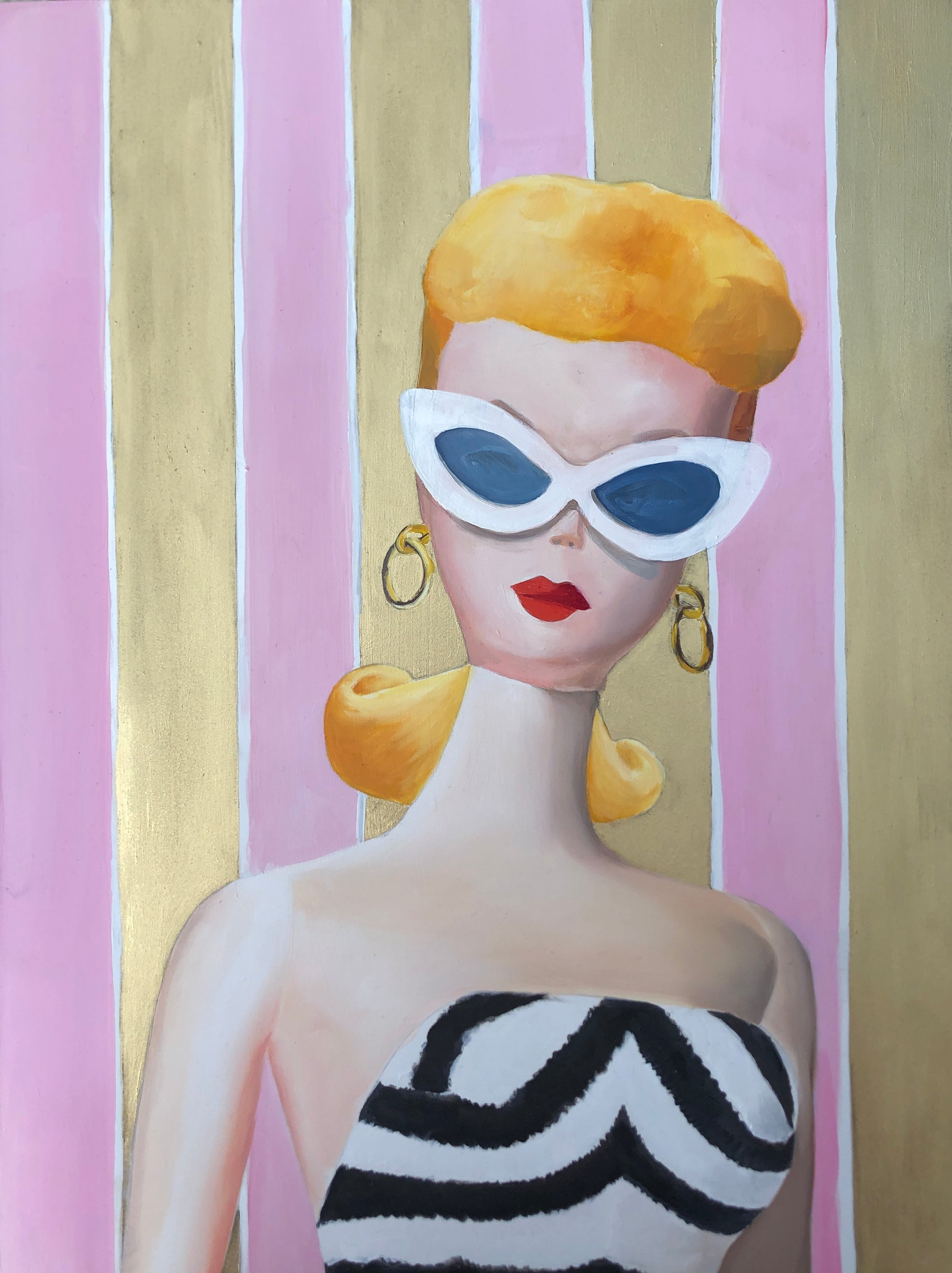 Barbie in all her vintage glory, surrounded in gold and ready for your wall.
