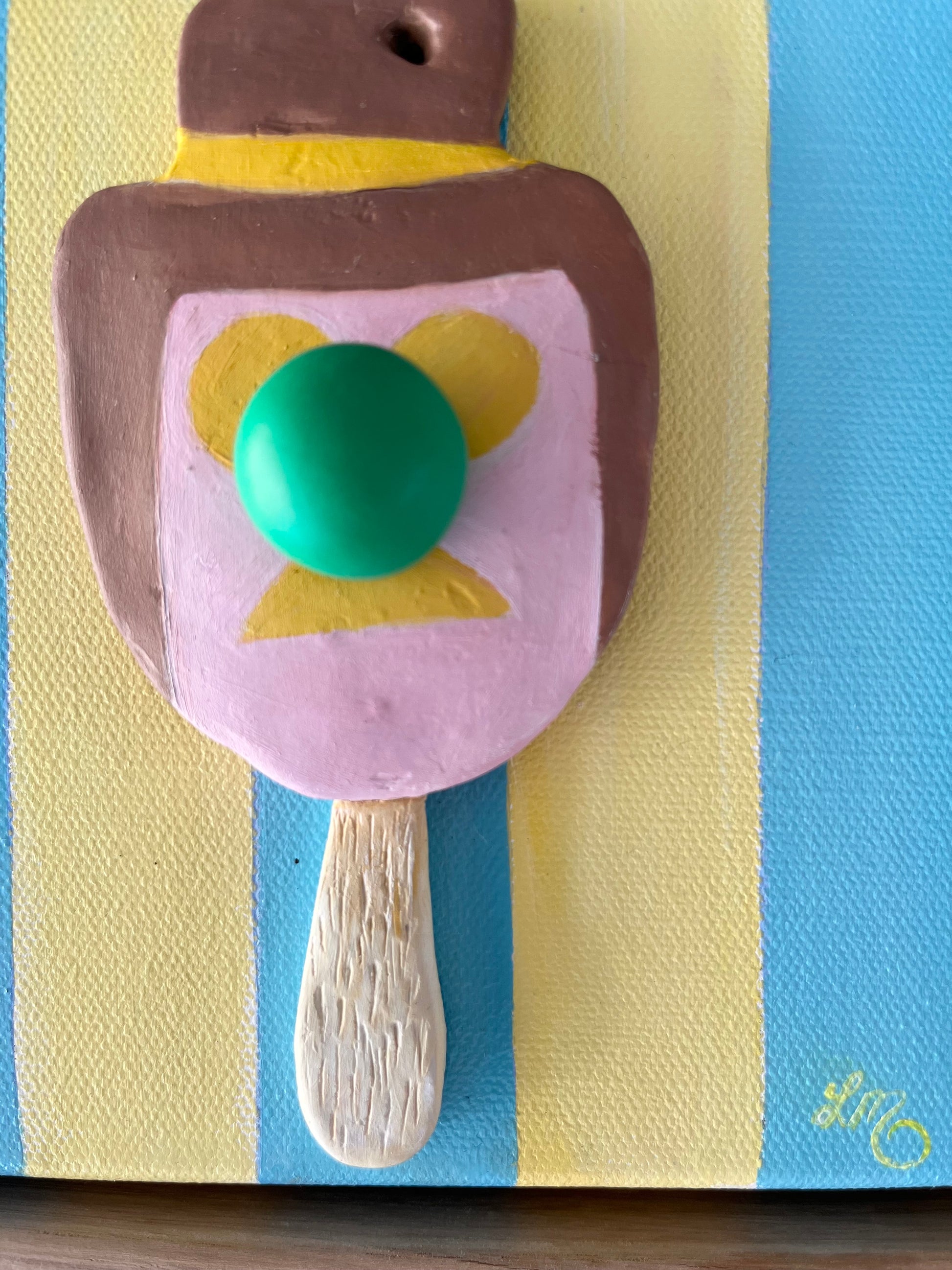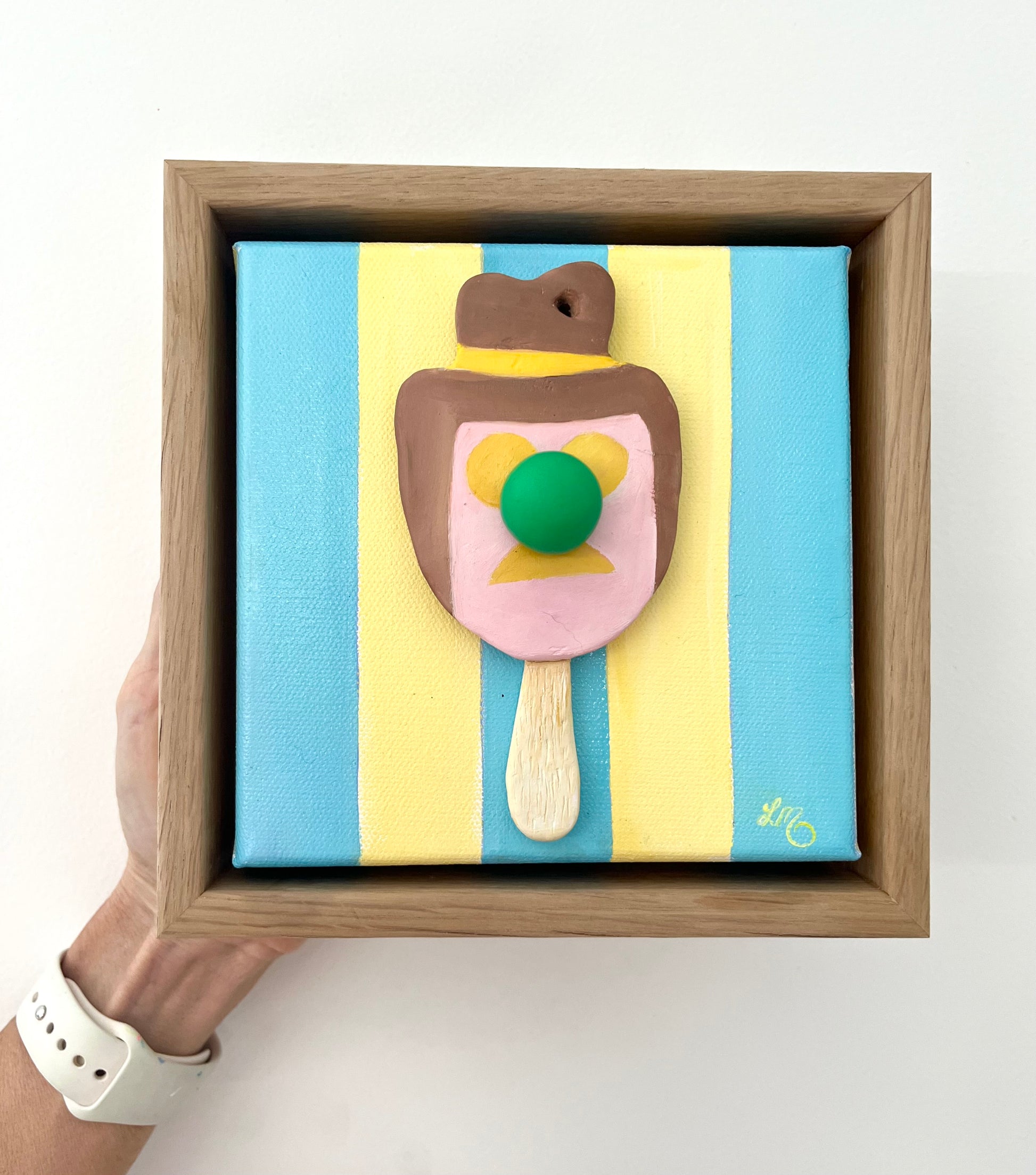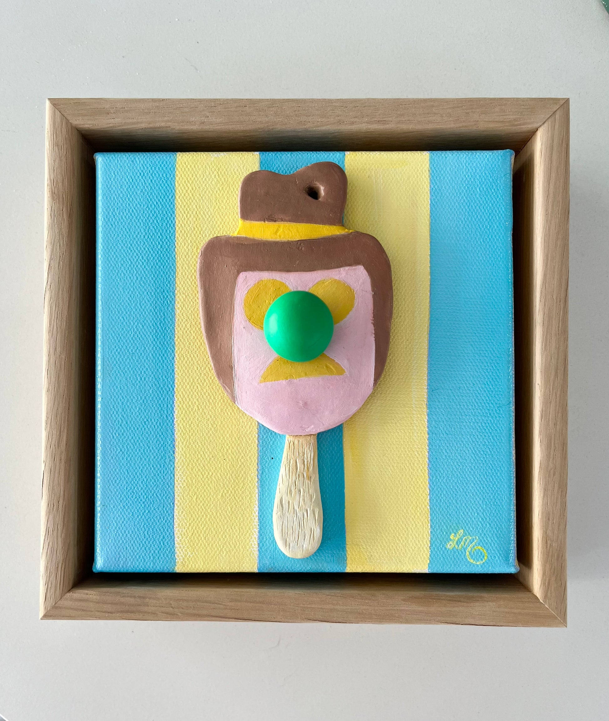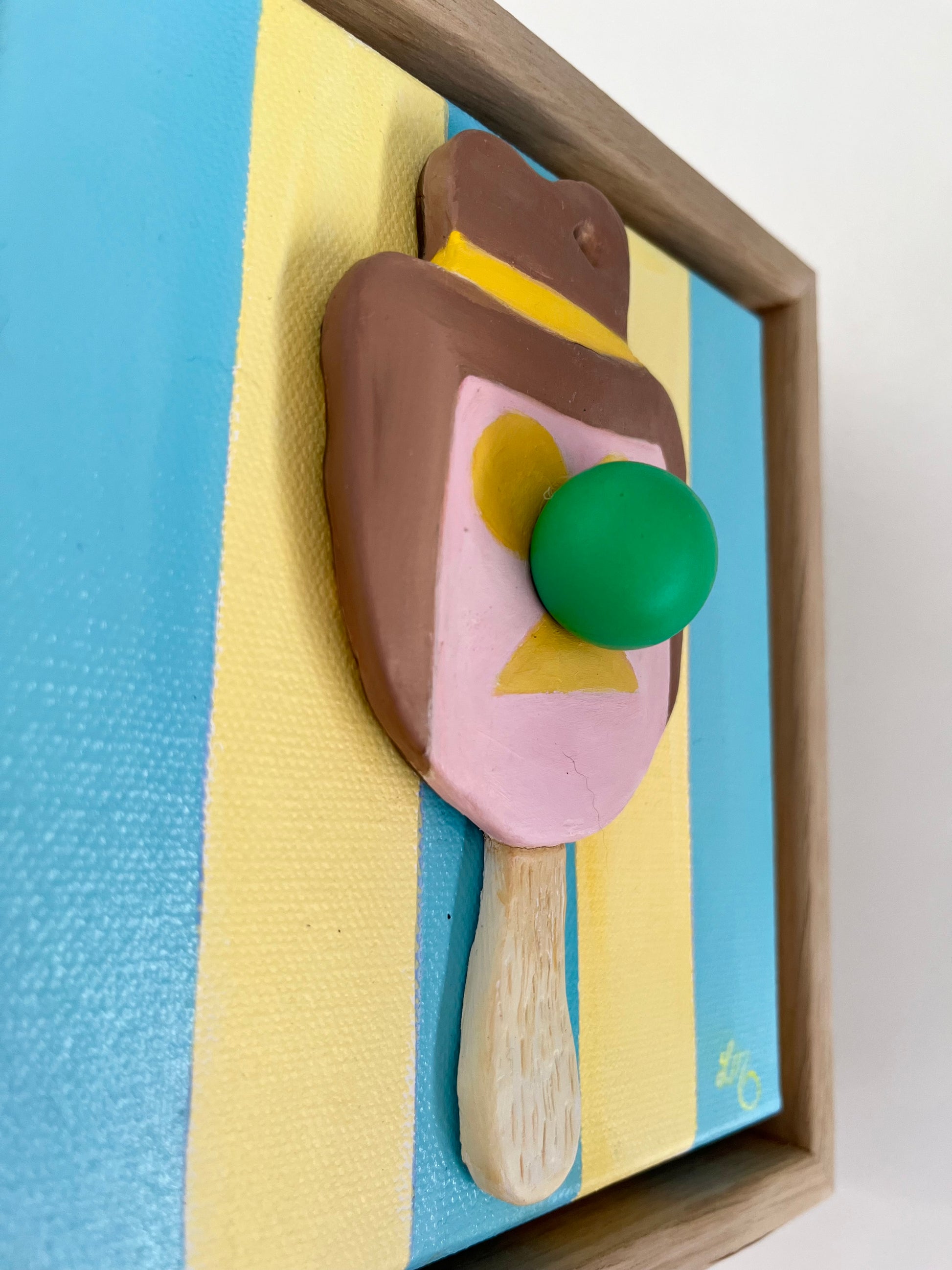Playful and nostalgic, Bill Green reimagines the classic Bubble O’ Bill through my signature pop-realism lens. Sculpted in 3D polymer paint, this small but vibrant work bursts with texture, humour, and a touch of Aussie summer nostalgia. The glossy surface and raised detail give the familiar ice cream icon new life — a joyful collision of memory, sugar, and art.
