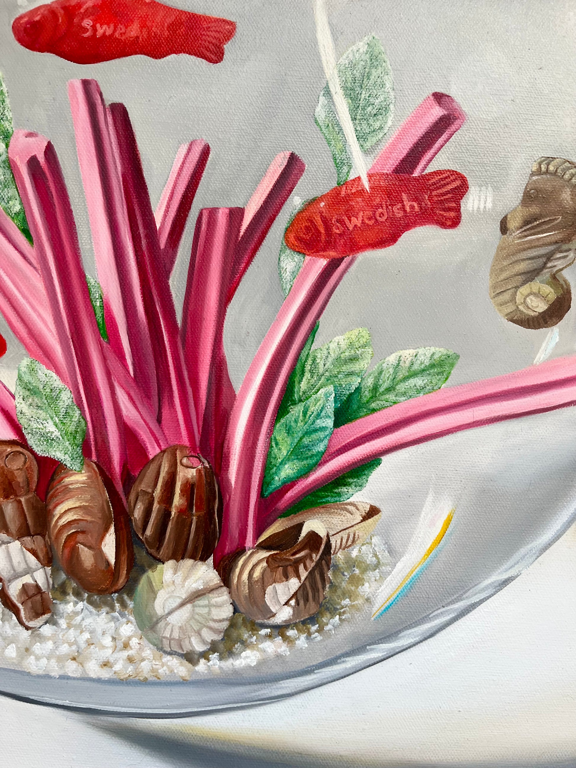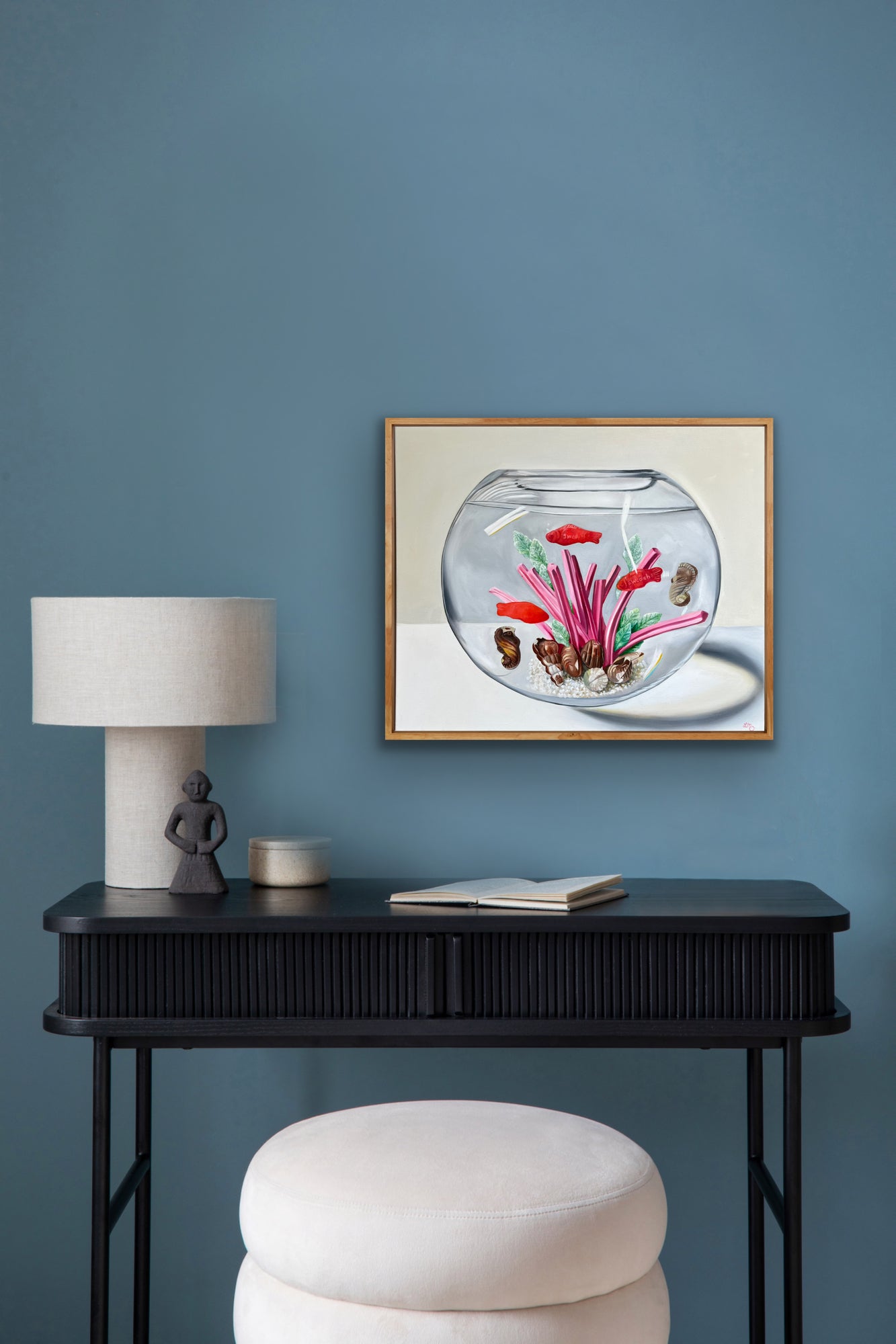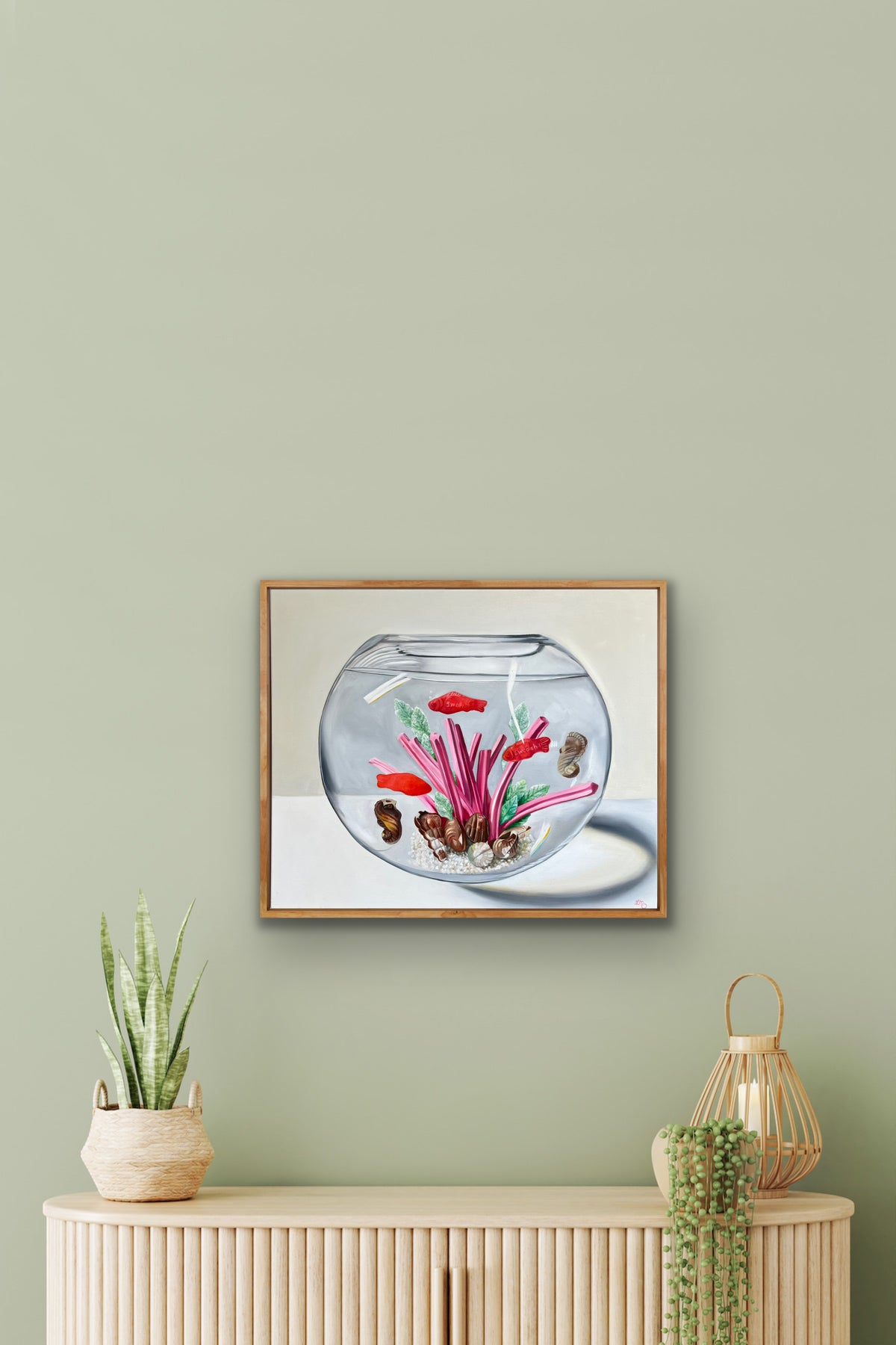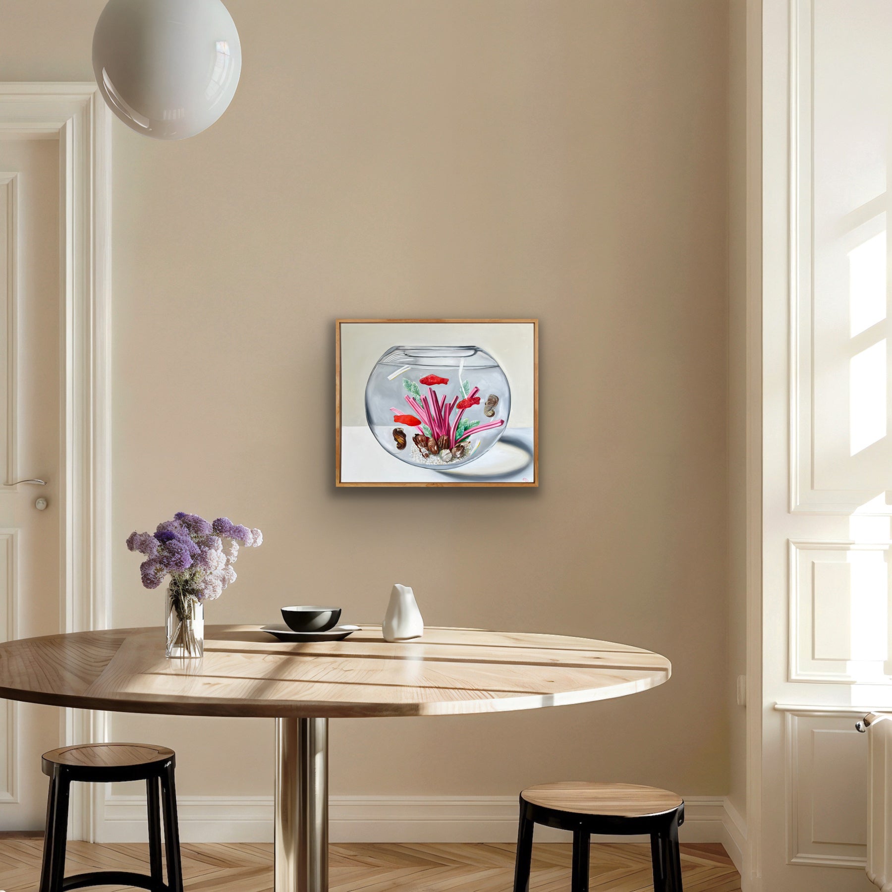 Oil on canvas, framed in an oak float frame 63 x 53cm.